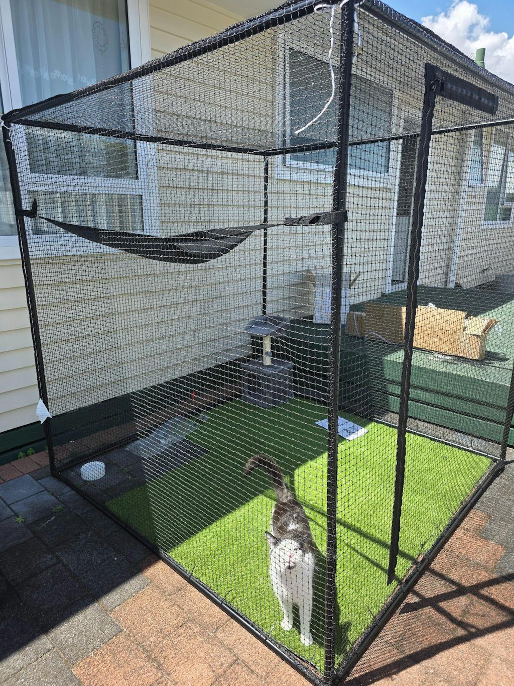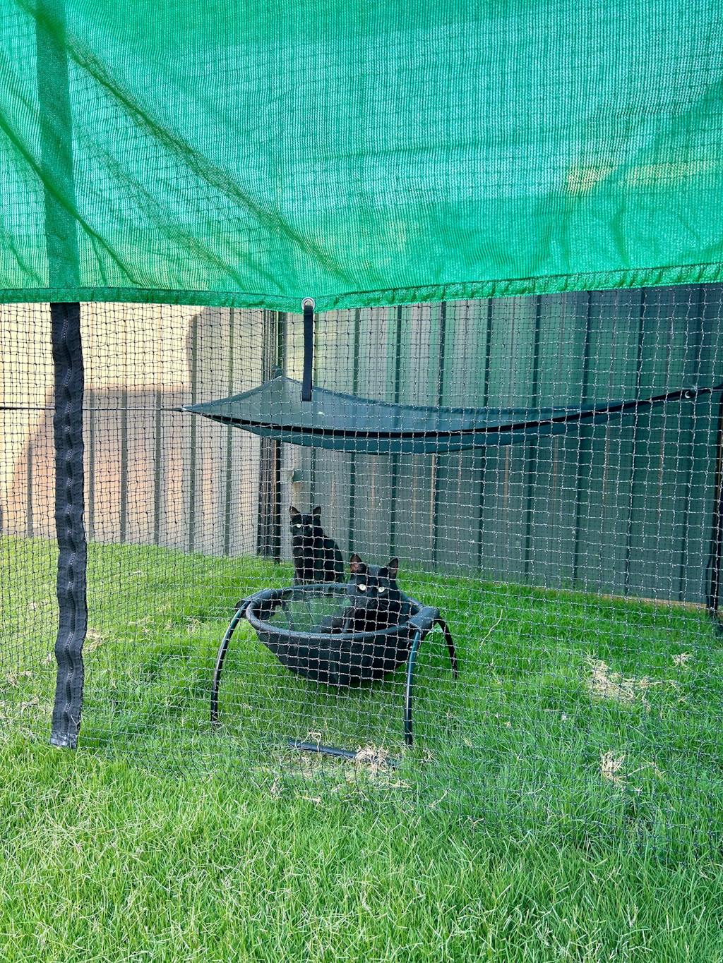 Having bought my Catnet enclosure in winter, I was not prepared for the hot summer sun. The addition of a shade sail has made a huge difference. My fur babies now love going out on even the sunniest days and sniffing the breeze in comfort. The shade sail was super easy to install too and easily be repositioned if I need to change things up in my enclosure.