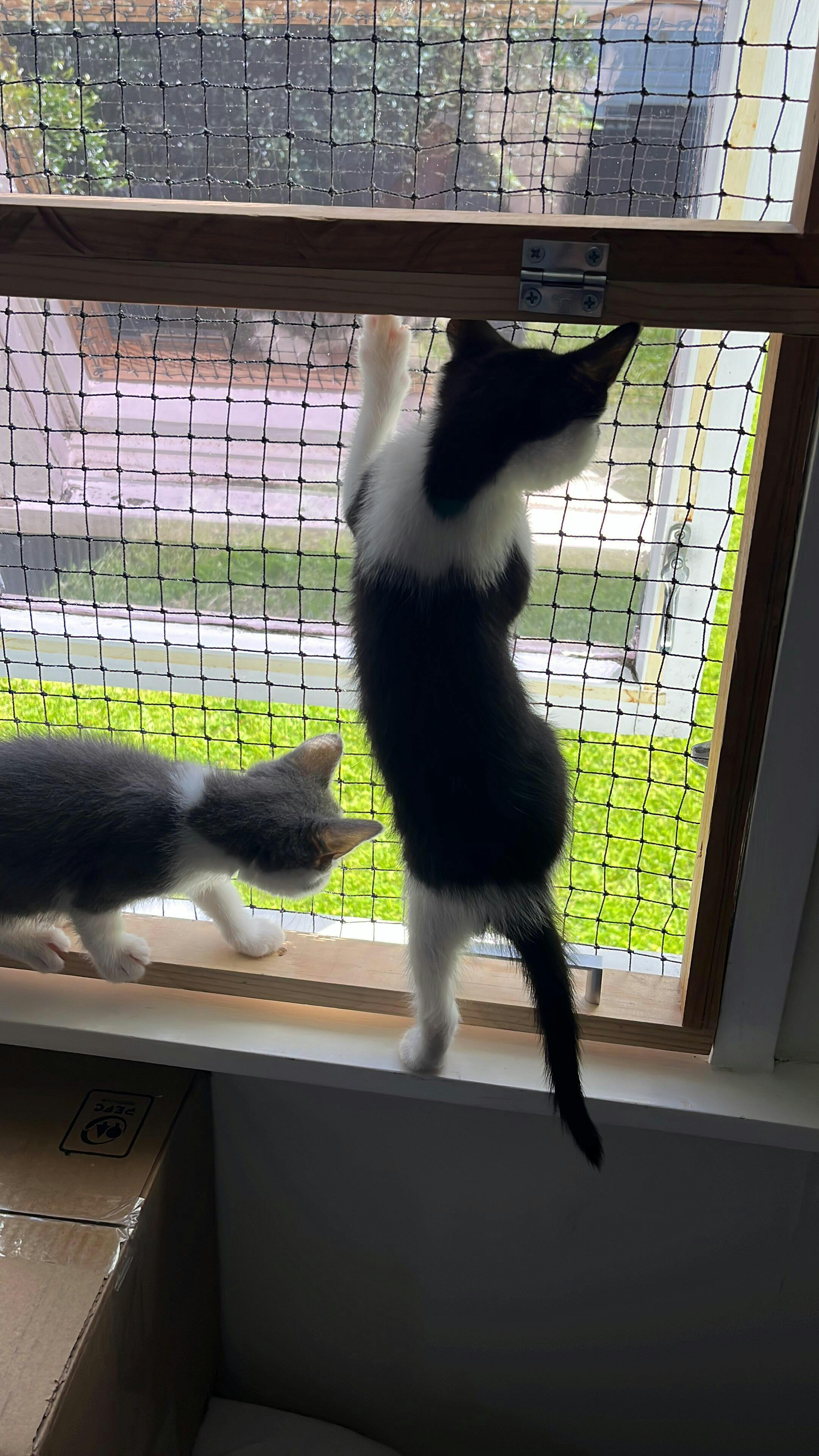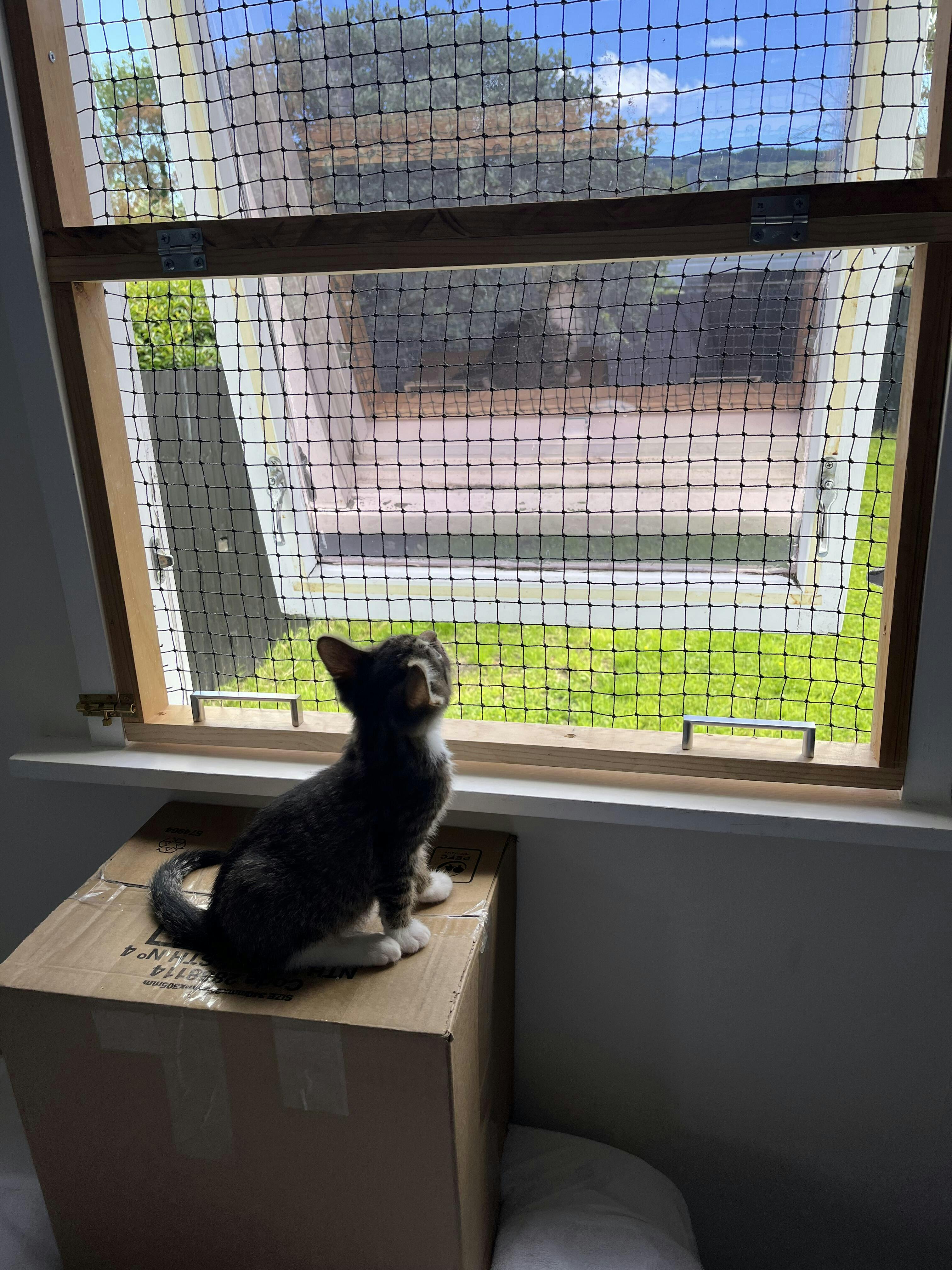 Due to the size of the netting squares, Catnets recommend kittens (6 months and under) should not be left unattended for prolonged periods within the enclosure. In regards to cat enclosures safety in general, it is advised that all netting is installed as taut as practically possible.